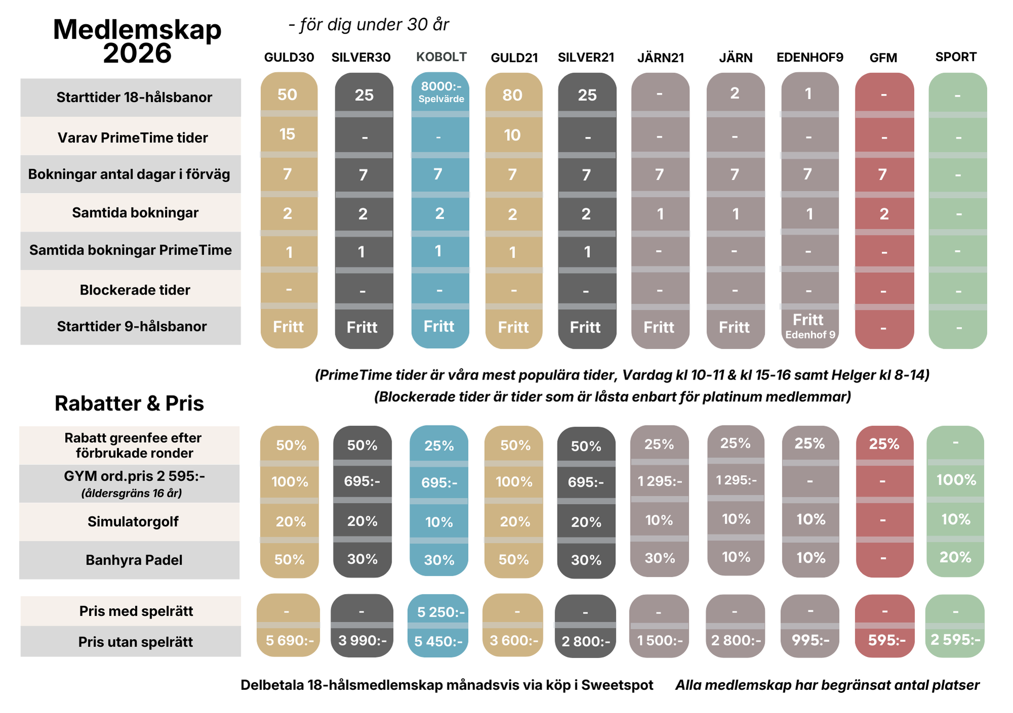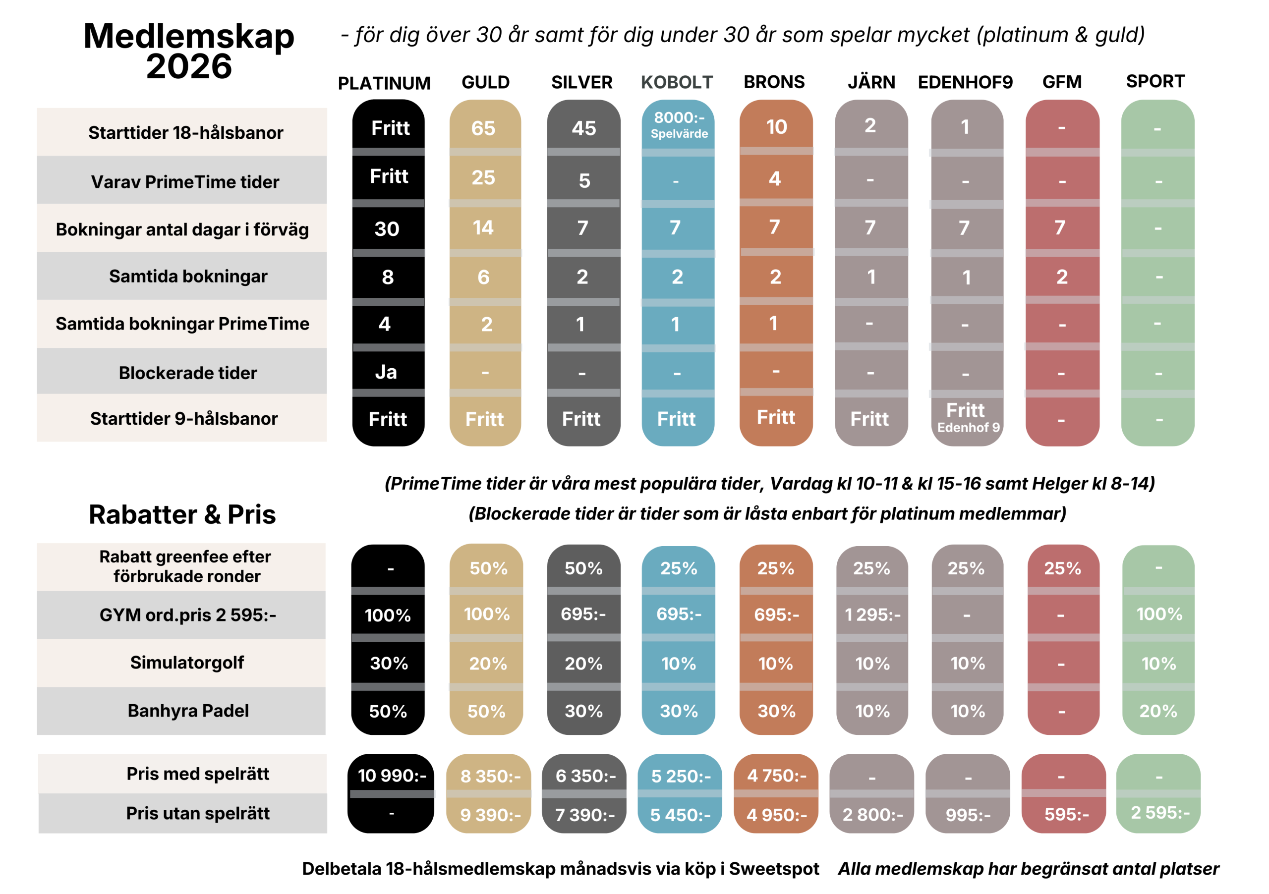 Många av medlemskapen inkluderar dessutom tillgång till vårt moderna gym på Söderby samt förmånliga rabatter på simulatorgolf och padel.